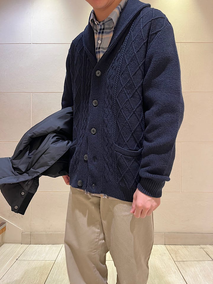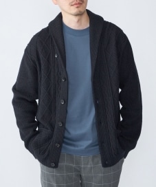〔SMALL〕SHIPS: 〈手洗い可能〉ウールコットン アラン ショール カーディガン