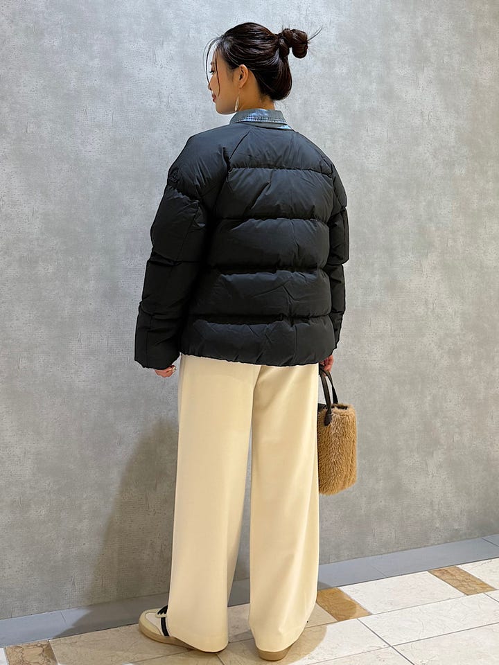 着用感 : とにかく暖かい!保温性抜群です。インナーにはカットソーなどの薄手なものを着用していただいても、しっかり暖まります。マットな質感でカジュアルから綺麗めまで合わせやすいです。とっても軽い着心地で、着丈もヒップまでなので動きやすいです。