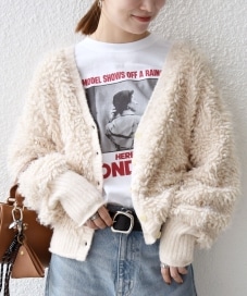 〔ONE SIZE〕SHIPS any: ループ ニット Vネック ショート カーディガン