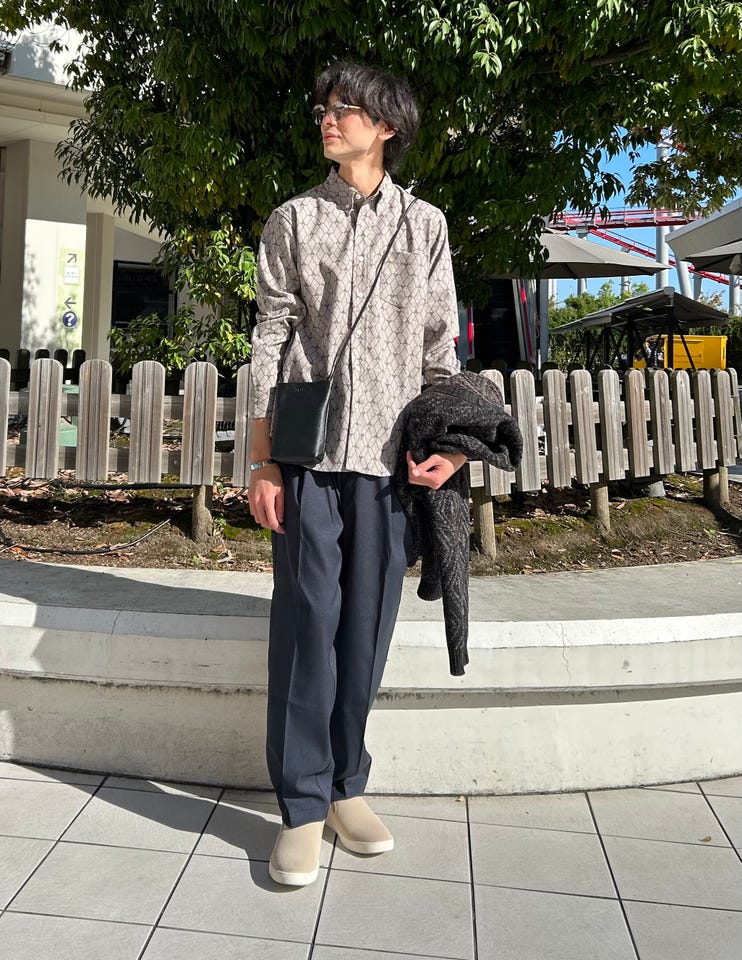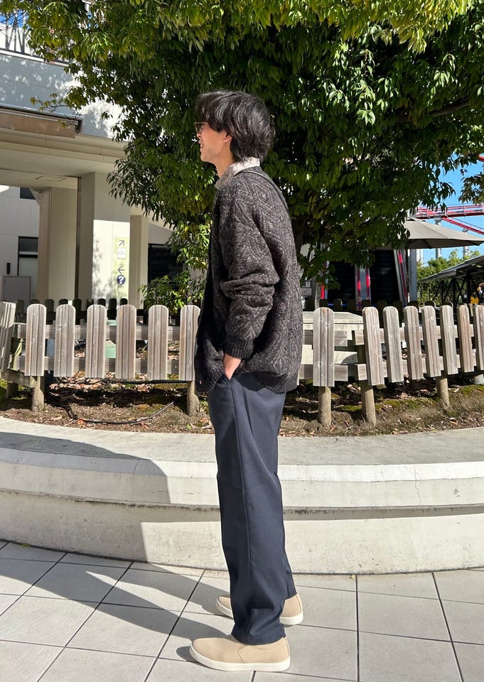 素材感/着心地:柔らかく着やすいです。柄もありコーデの主役になります。