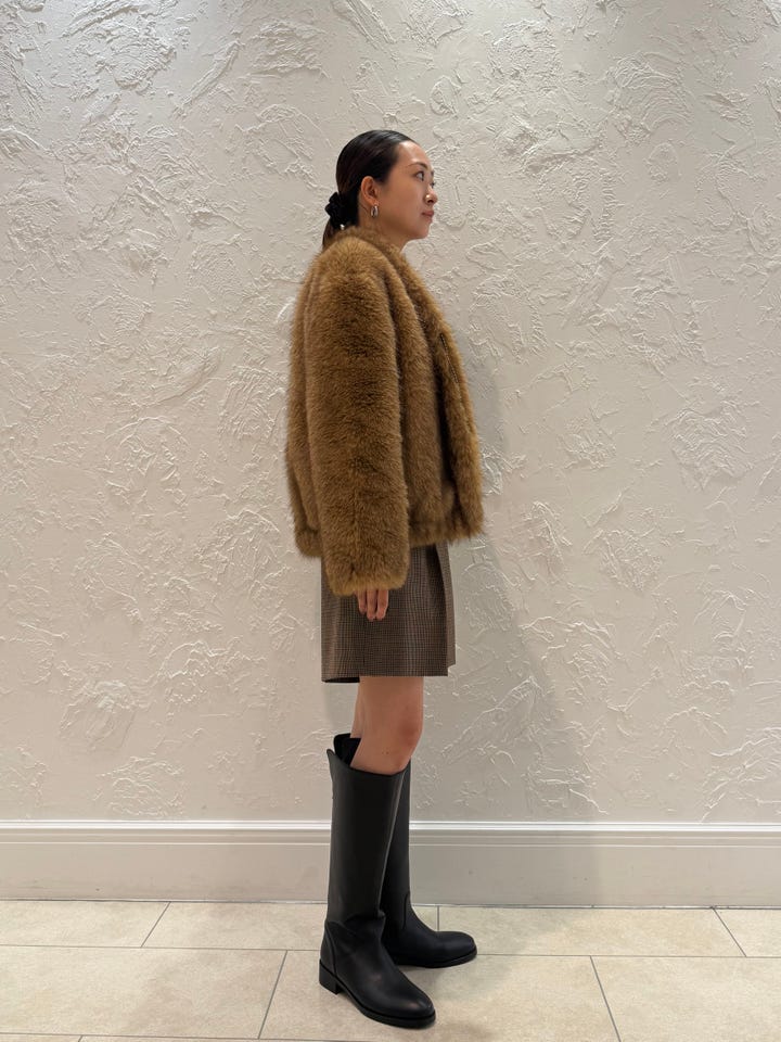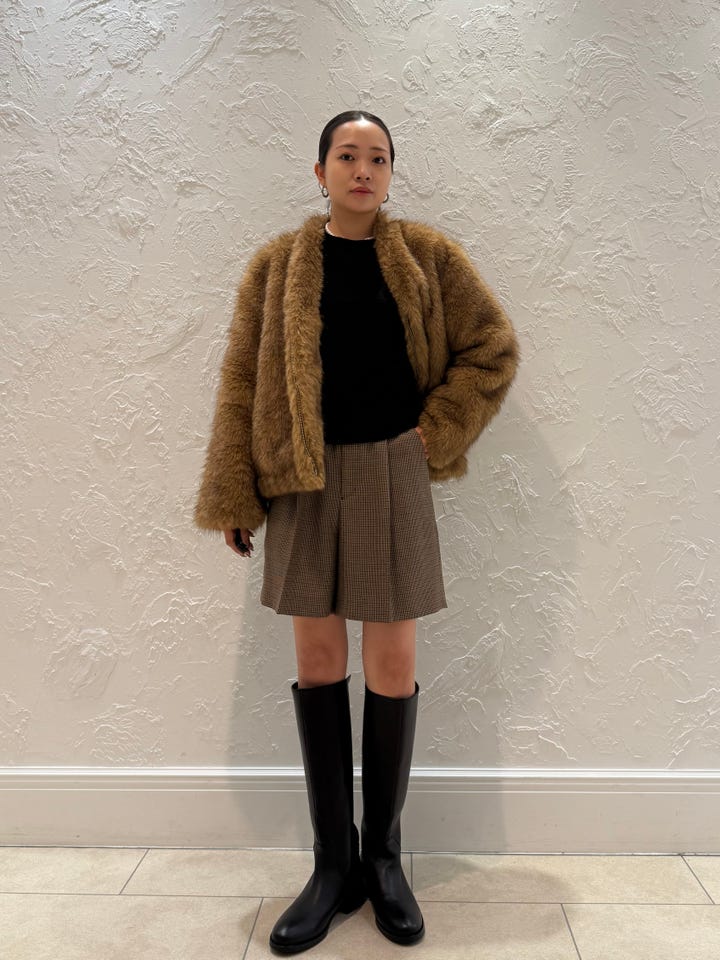 サイズ感・着心地:ゆとりあり。肌触りとても良いふわふわしたファーコートです。丈感短めでかなりバランス良く着られます!