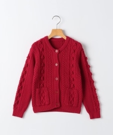 〔90〕SHIPS KIDS:80〜90cm /〈洗濯機可能〉ケーブル ニット ポンポン カーディガン