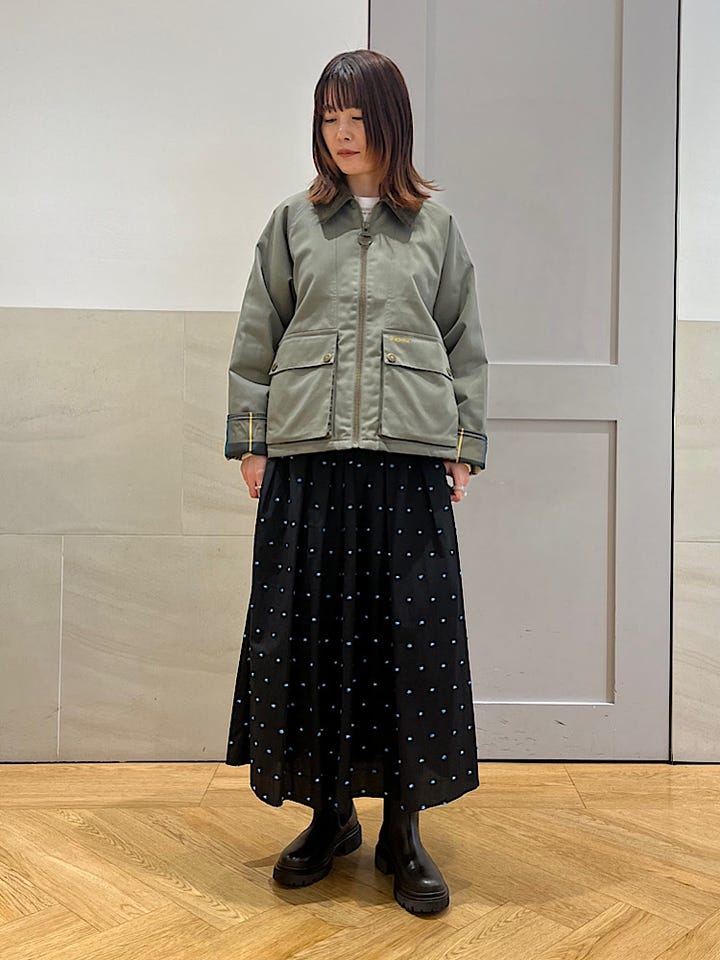 〔ONE SIZE〕〈手洗い可能〉ポンポン ジャカード タック フレア スカート