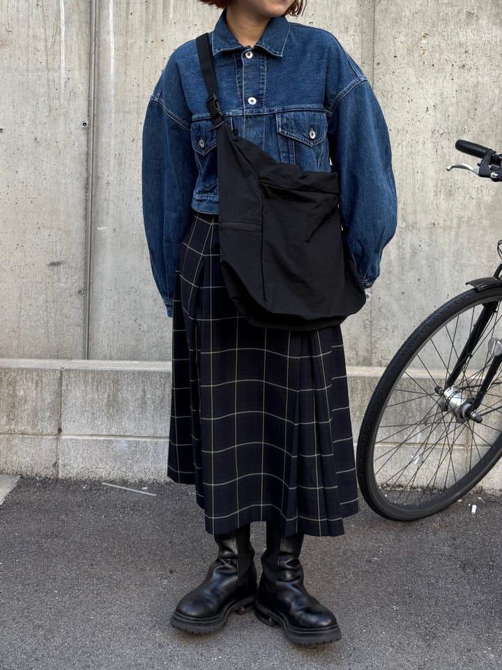 着心地:ミディ丈プリーツスカートでトレンド感のある1着。ロングブーツやローファー合わせもおすすめです。