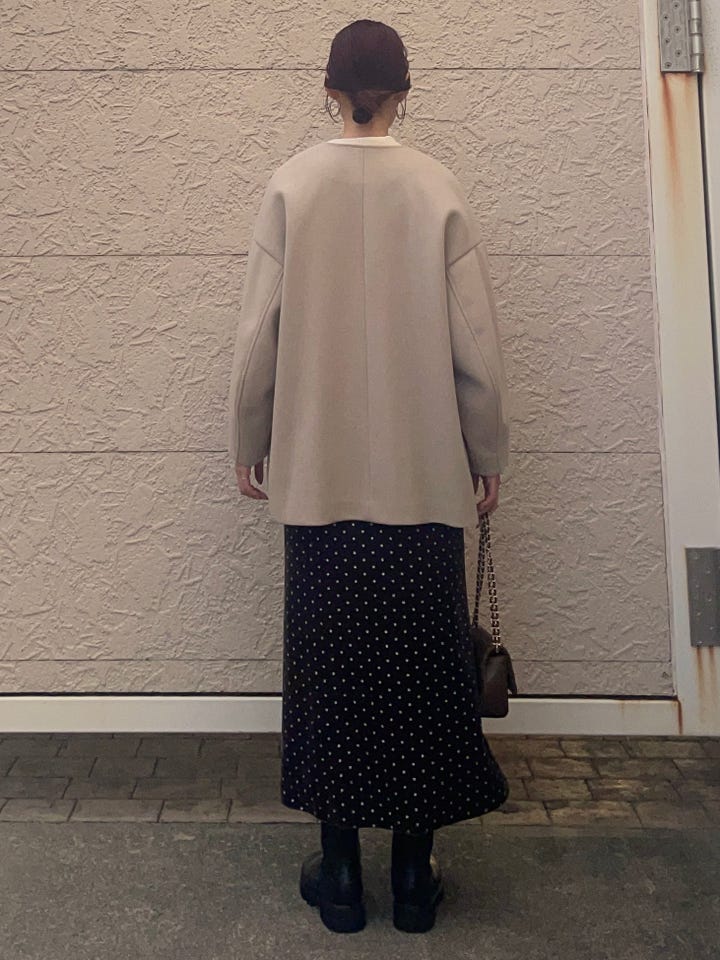 ゆったりめのサイズ感だが、後ろから見ても綺麗なシルエット。丈はお尻が被るぐらい。