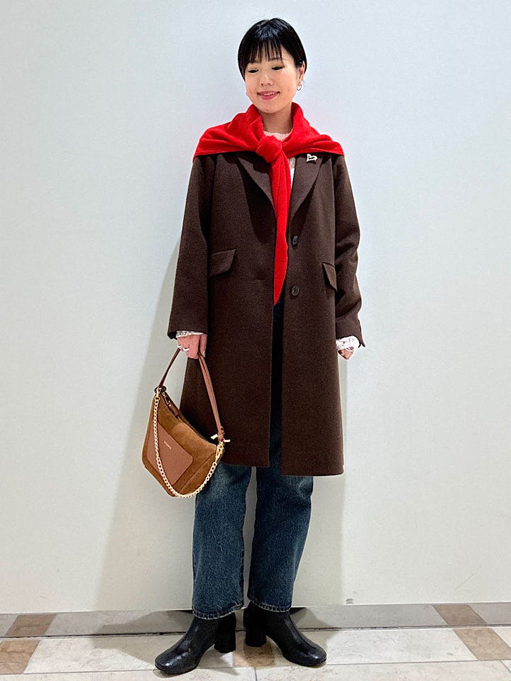サイズ感:程よくゆっくりしたサイズ感、肩周り身幅はゆとりがあります。スッキリとしたシルエット。膝上丈。