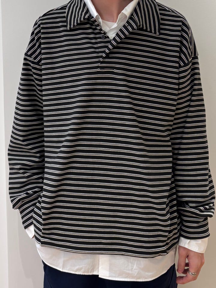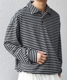 〔MEDIUM〕SHIPS any: ブラッシュド マルチボーダー ヘムタック スピンドル ポロシャツ◇