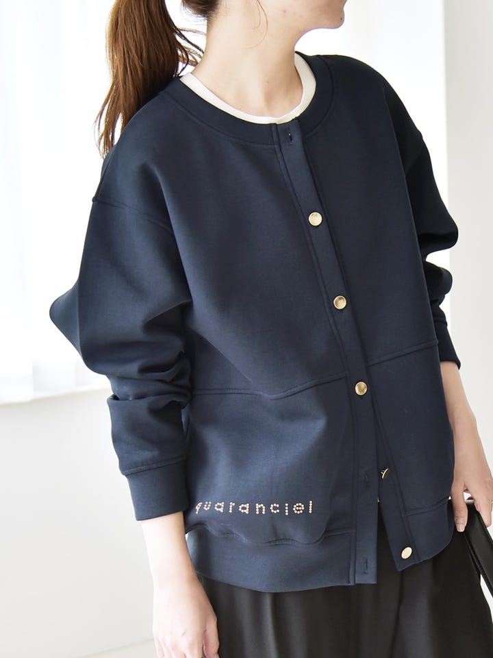 〔ONE SIZE〕quaranciel:〈洗濯機可能〉スタッズ ロゴ ダンボール スウェット カーディガン