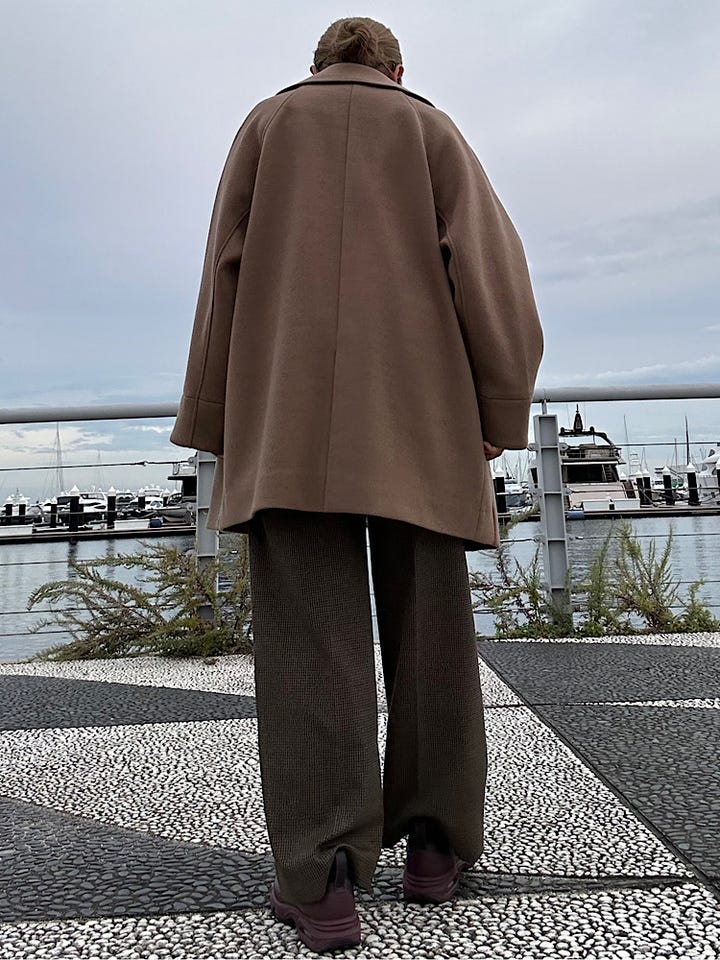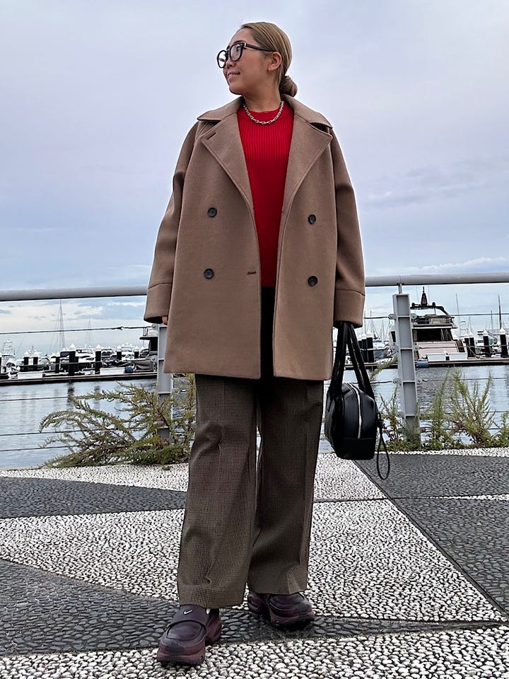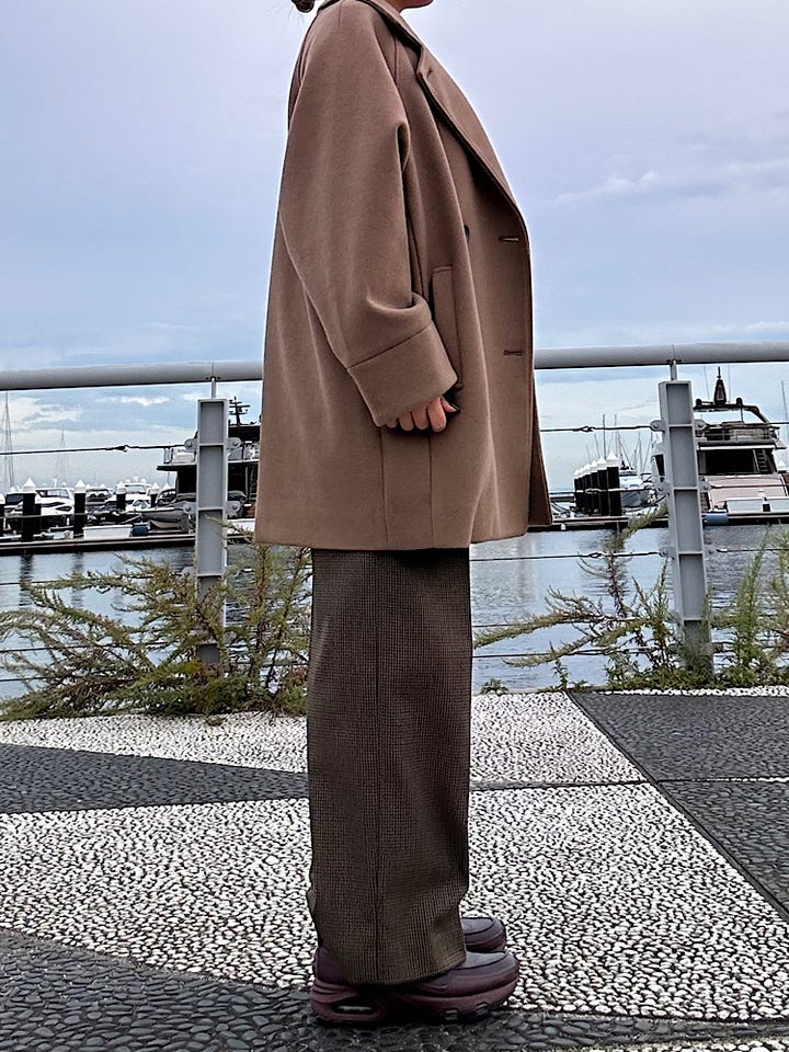 【素材感・着心地】ウール混のジャージーメルトンシリーズ!ゆったりとしたアームホールでボリュームのあるニットを着込んでも羽織りやすいのがポイント◎