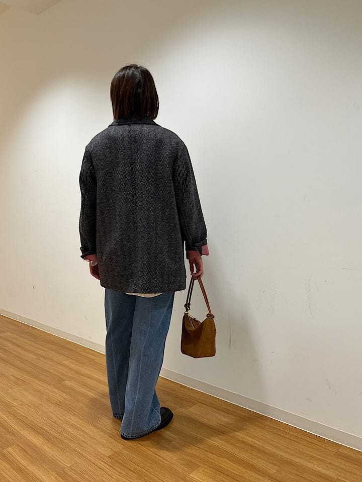 〔36〕SHIPS Primary Navy Label:ヘリンボーンツイード ジャケット コート