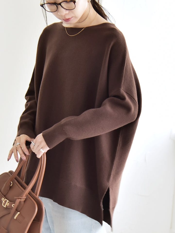 〔ONE SIZE〕quaranciel:〈洗濯機可能〉ボートネック ワイド ニット プルオーバー