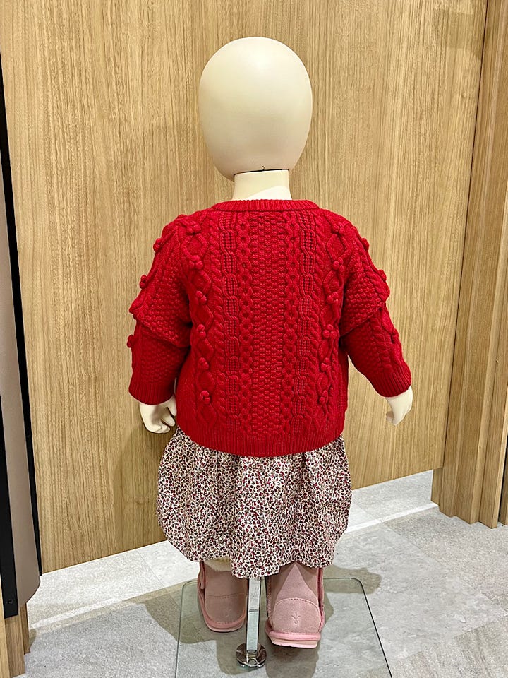 〔80〕SHIPS KIDS:80〜90cm /〈洗濯機可能〉ケーブル ニット ポンポン カーディガン