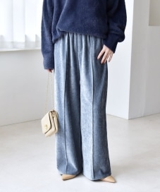 着心地:柔らかいベロア調の生地。ゴムウエストでイージーな履き心地です。