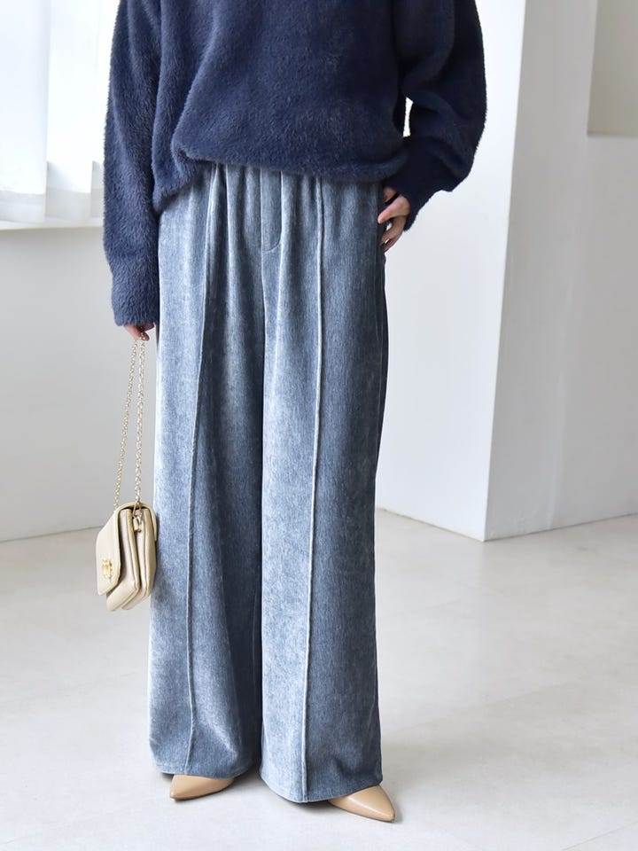 〔ONE SIZE〕quaranciel:〈洗濯機可能〉ポリエステル ベロア ピンタック イージー ワイド パンツ