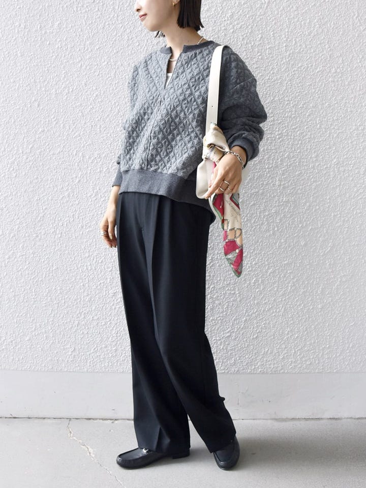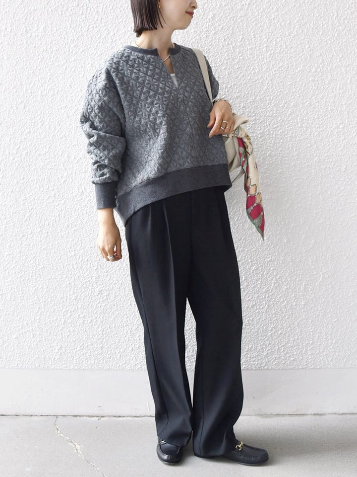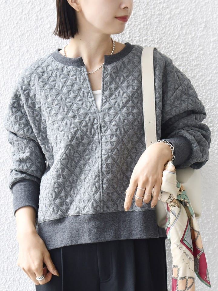 〔ONE SIZE〕【WEB限定】〈手洗い可能〉キルティング ジャカード キーネック プルオーバー