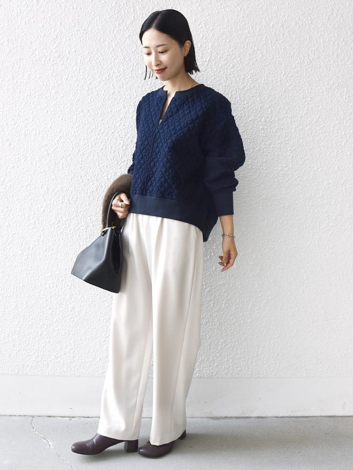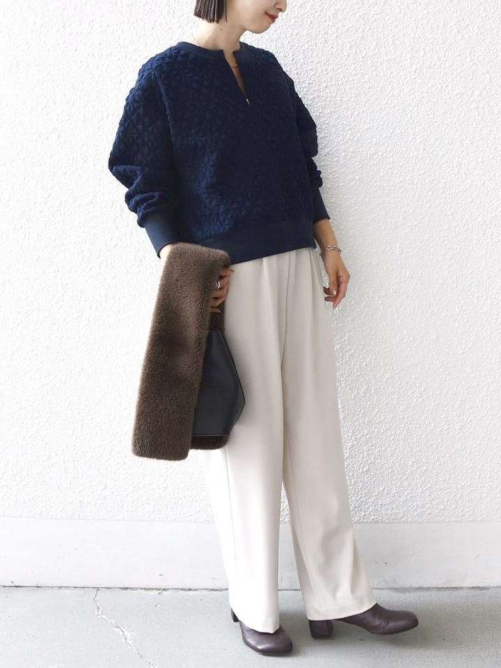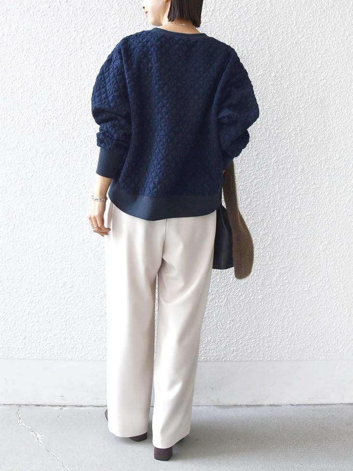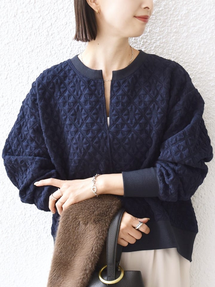 〔ONE SIZE〕【WEB限定】〈手洗い可能〉キルティング ジャカード キーネック プルオーバー