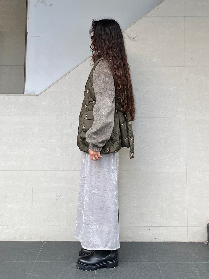 〔ONE SIZE〕〈手洗い可能〉スノー クラッシュ ポリエステル ベロア ウエスト ゴム スカート
