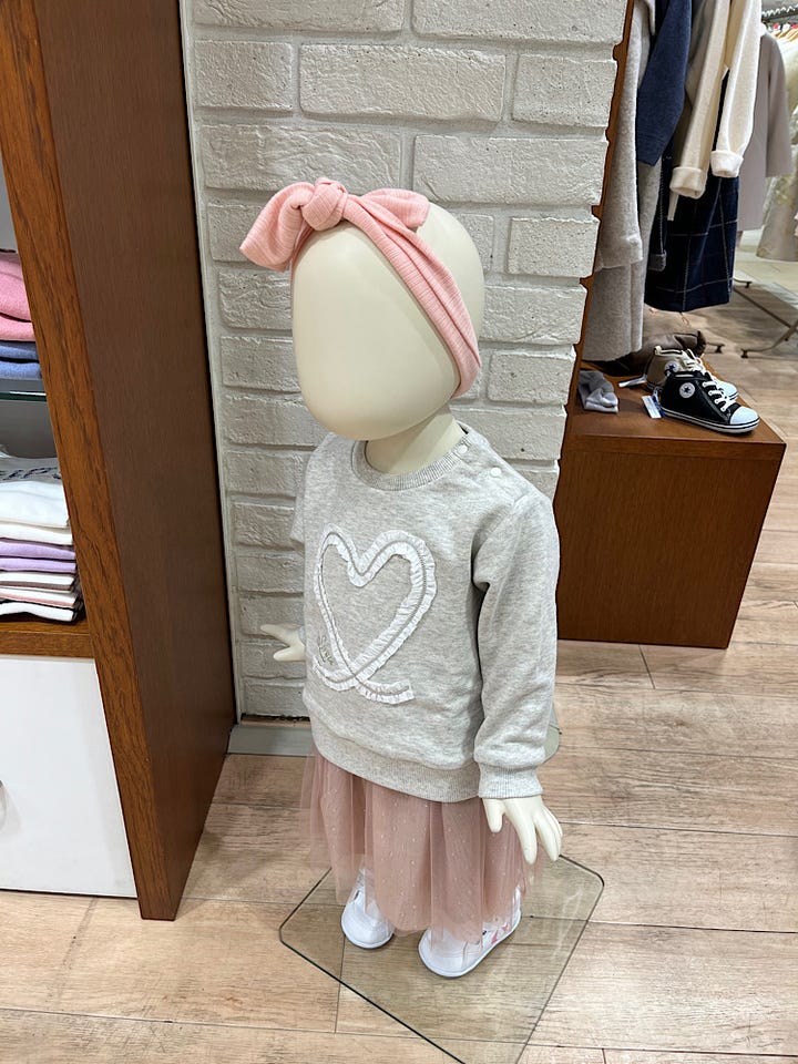 スパンコールとレースでハートができているスエットです。水色とグレーの使いやすい2色展開です。