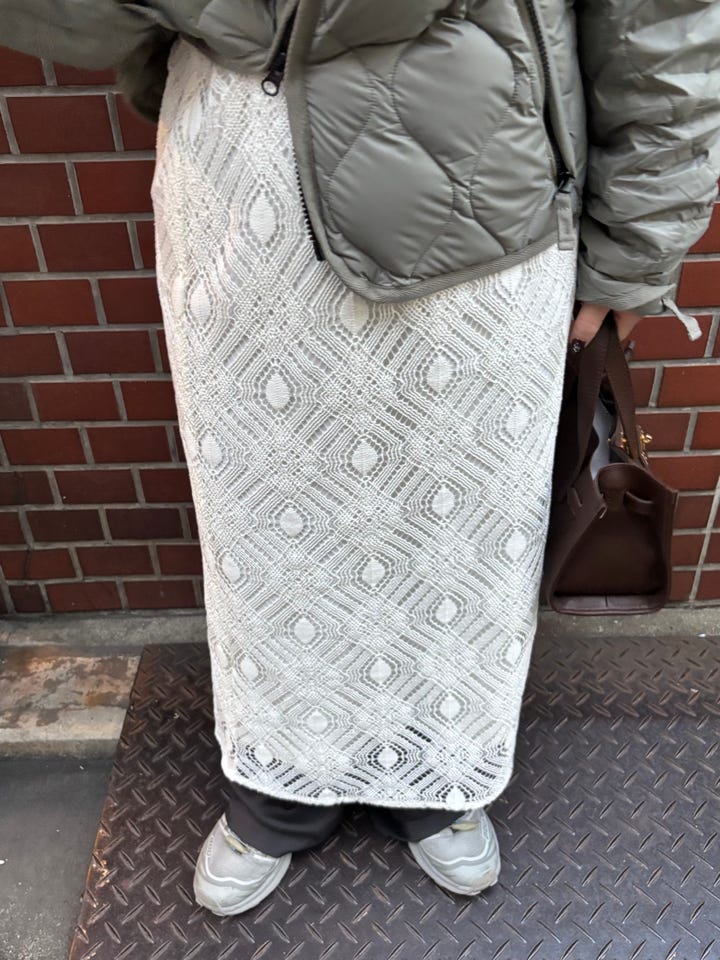 〔ONE SIZE〕〈手洗い可能〉ラッセル レース ウエスト ギャザー タイト スカート
