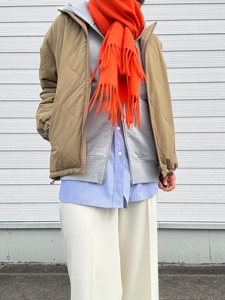 着心地:リバーシブルで着ていただけるアウターです!ドローコードでシルエットのアレンジもしていただけます。