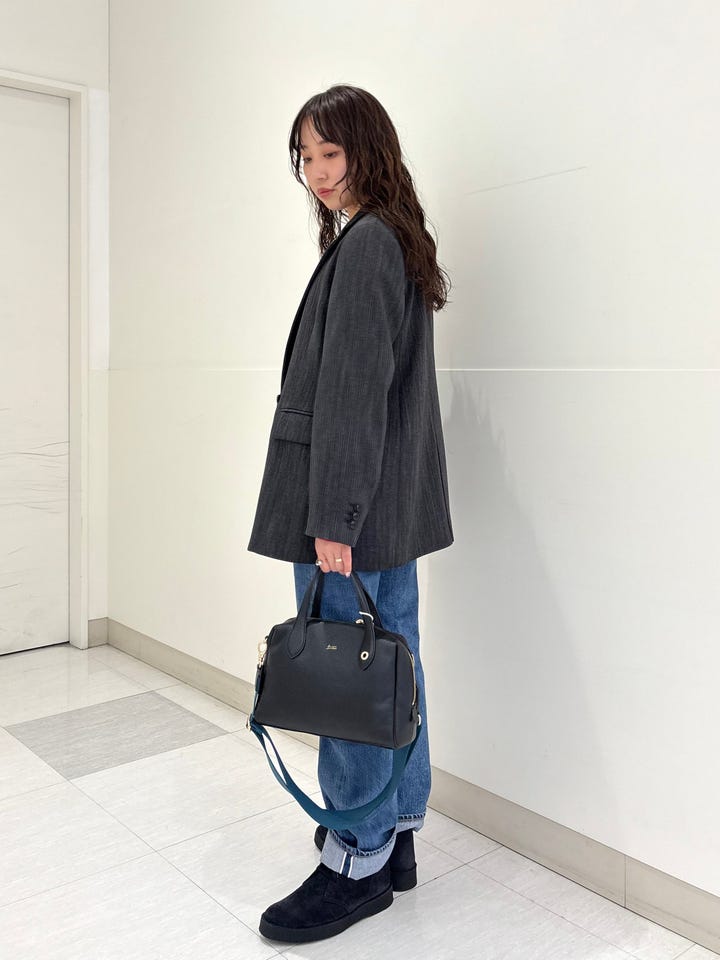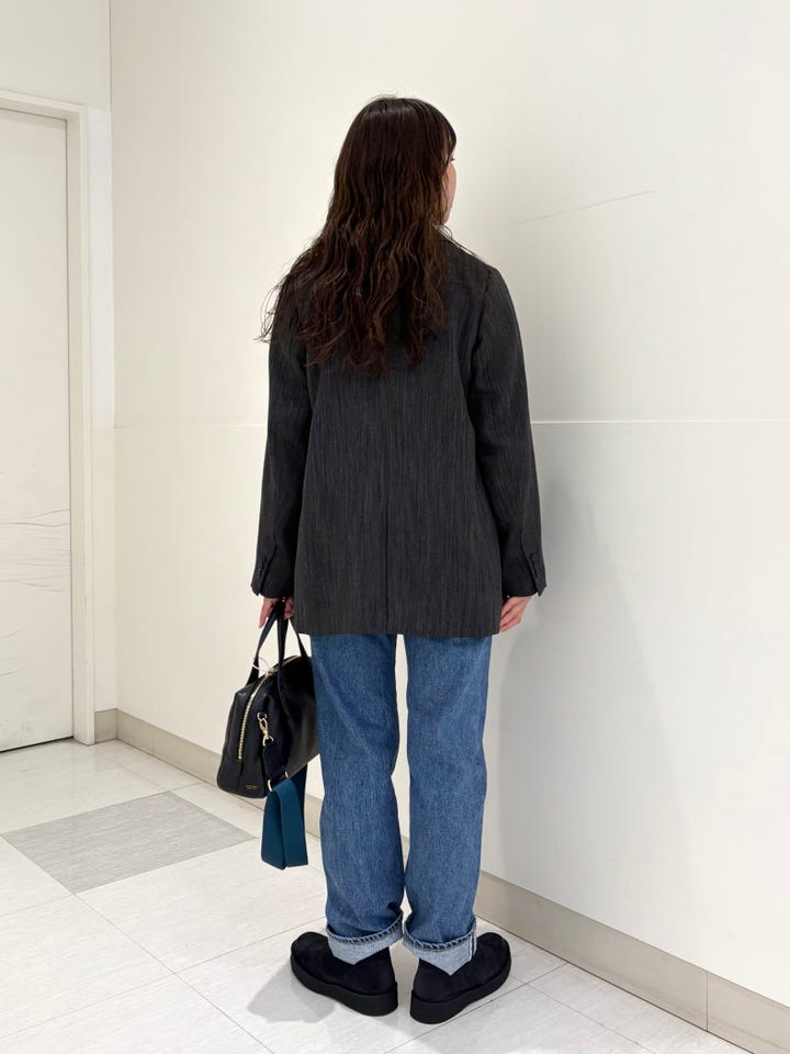 インナーに重ね着やニットを着てもゆとりがあるサイズ感。落ち着いたグレーの色味で大人っぽく、お出かけやキレイめなシーンでもおすすめです。