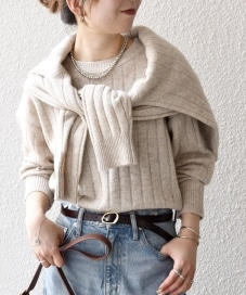 着用アイテム:SHIPS any:〈手洗い可能〉ヤク ワイドリブ ラウンドヘム ニット プルオーバー