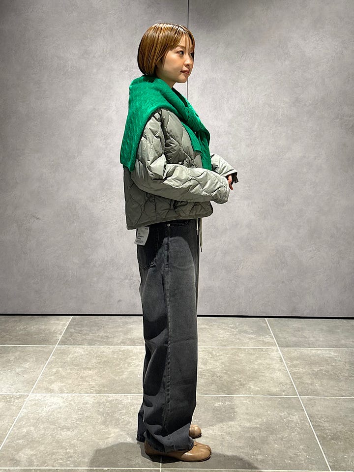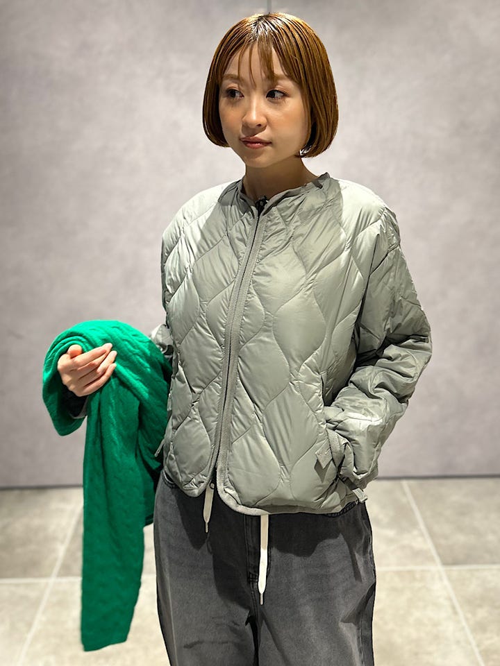 素材感・着心地:コンパクトシルエットですがゆとりあのある身幅でニットやカーディガンなどレイヤードも楽しんでいただけるフィット感です。ジャケットのように気軽に着用できます。カジュアルにも、スカートやワンピースなど甘めアイテムとの相性も◎