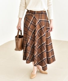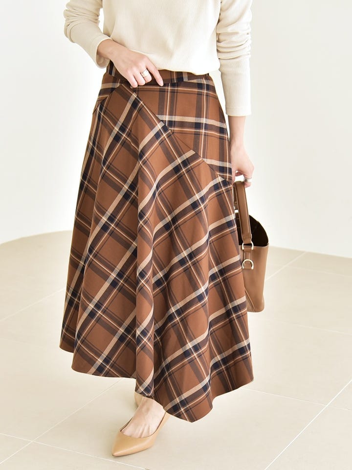〔38〕quaranciel:〈洗濯機可能〉アシンメトリー ヘム フレア チェック スカート