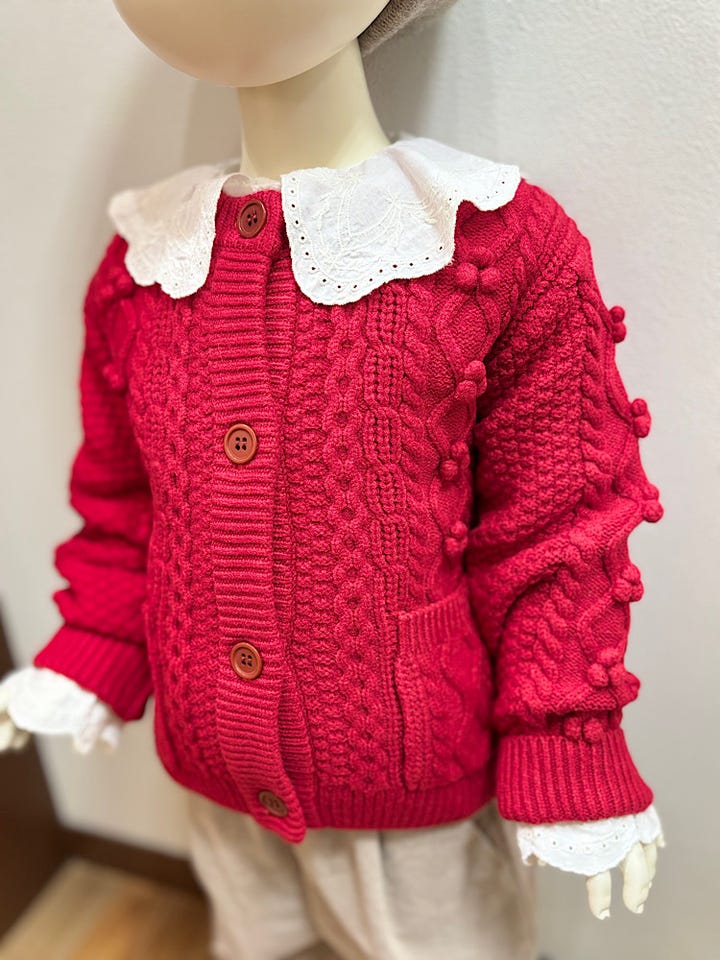 〔100〕SHIPS KIDS:100〜130cm /〈洗濯機可能〉ケーブル ニット ポンポン カーディガン