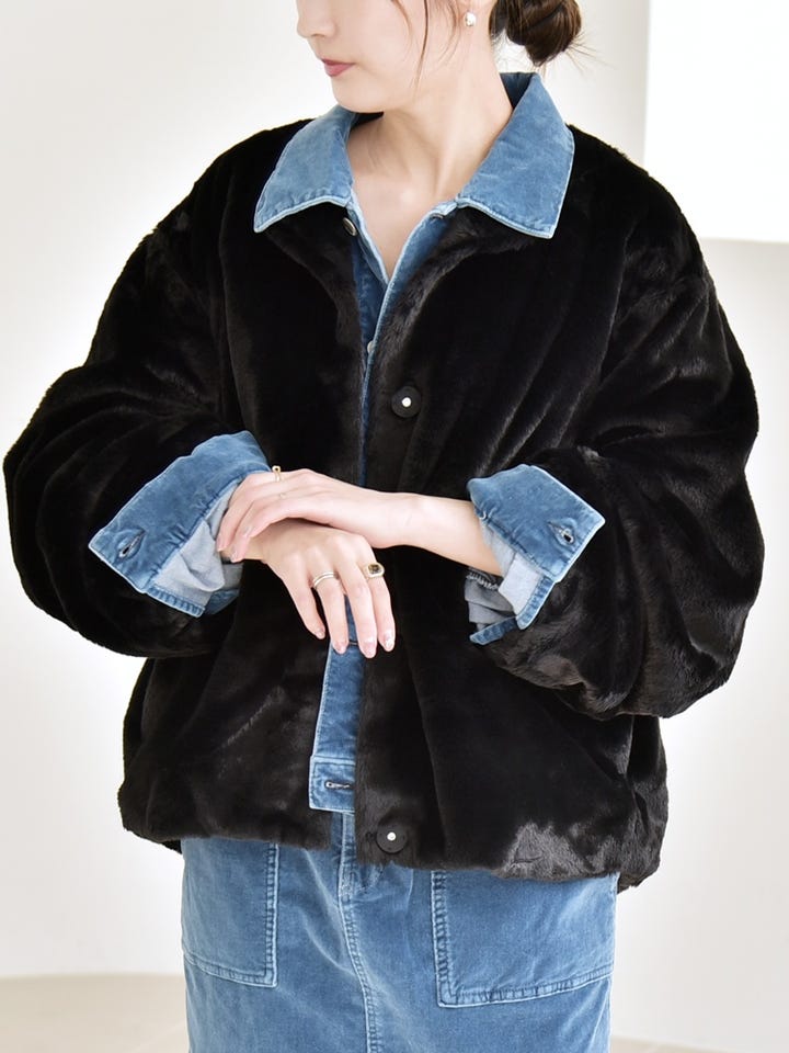 〔ONE SIZE〕quaranciel: フェイクファー ノーカラー ショート ジャケット