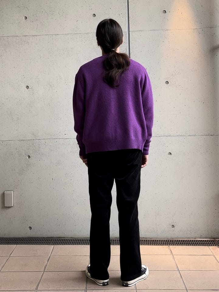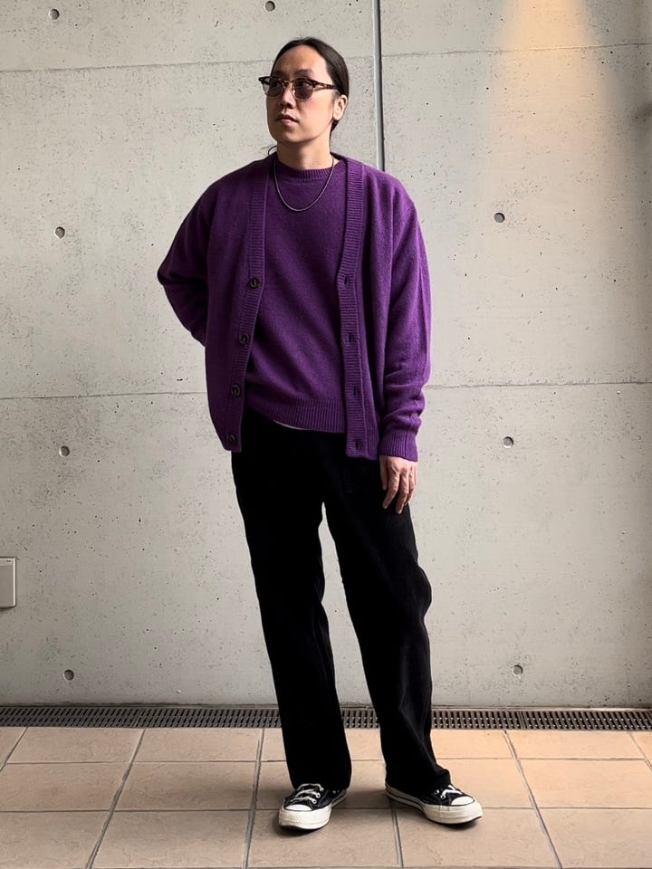 今の時期に是非着て欲しい着心地も抜群なニットと同素材のカーディガンを合わせてみました。パンツは毎年定番でしているグラミチのパンツ。今年は昨年より少しワイドなシルエットに変更しています。ストレートなシルエットなのでどのコーデにも合わせ易いです。参考にしてみてください。