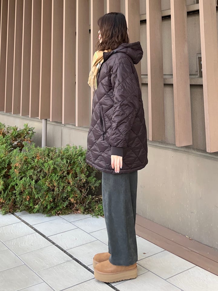 着心地:柔らかく少し落ち感のあるコーデュロイパンツ。ウエストはゴムで、履きやすいです。