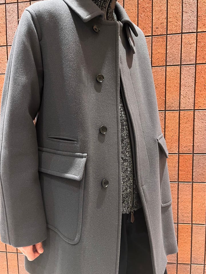 素材感:ウール×シルクのメルトン素材です。オンオフ兼用でお使いいただける上品な素材感です。