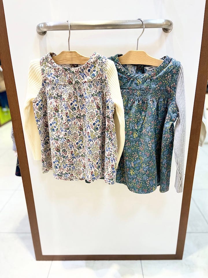 トップスは、コーデュロイ生地とリブ袖を重ね着したようなデザインになっていて、一枚でおしゃれなアイテムです。
