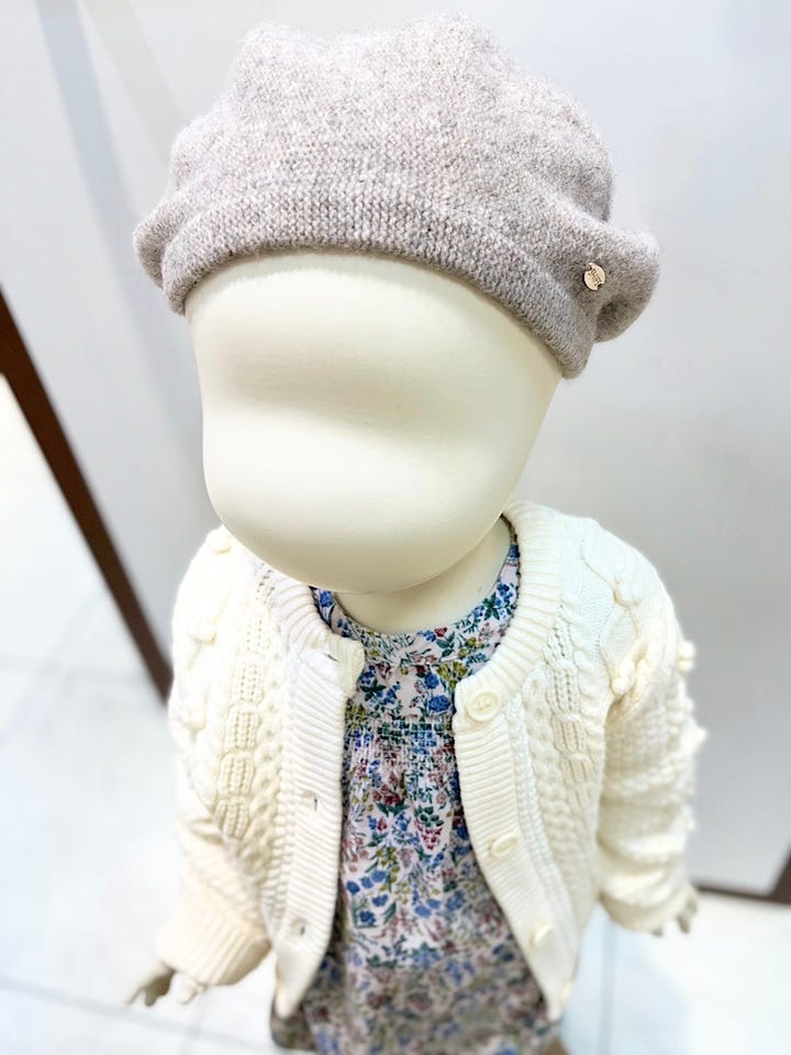 ケーブルカーディガンには、ふわふわとしたポンポンテールがついています。