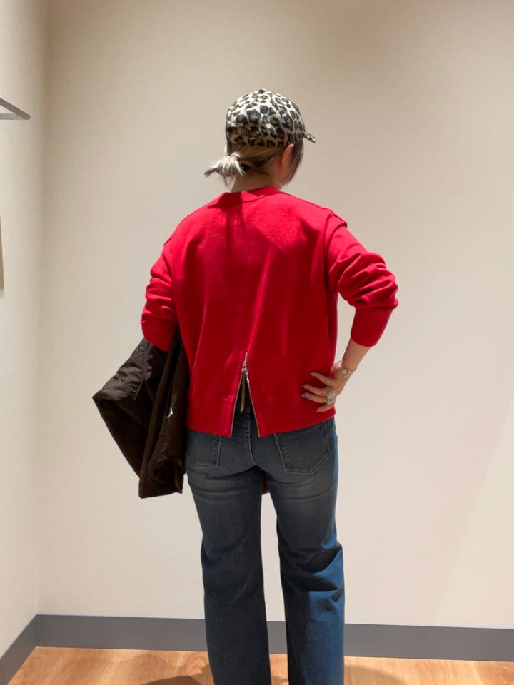 後ろがチャックになっていて、柄物などをインナーにレイヤードしても可愛いです!
