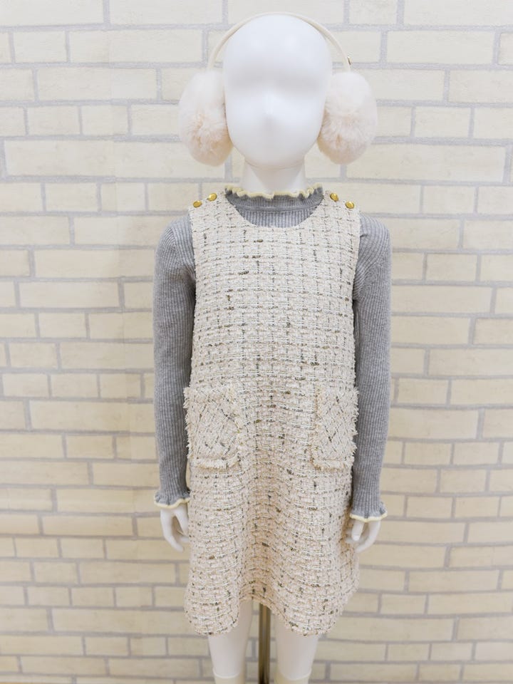 キラキラしたラメ糸が魅力のツイードジャンパースカート。
