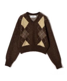 〔ONE SIZE〕JANE SMITH:〈洗濯機可能〉7G ウール ジャカード アーガイル Vネック ニット