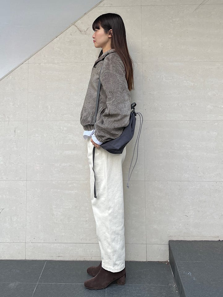 カジュアルなアイテムですが、コンパクトなシルエットでラフになりすぎないです。ブラウンに近いカーキの絶妙なカラーがとてもオシャレです!