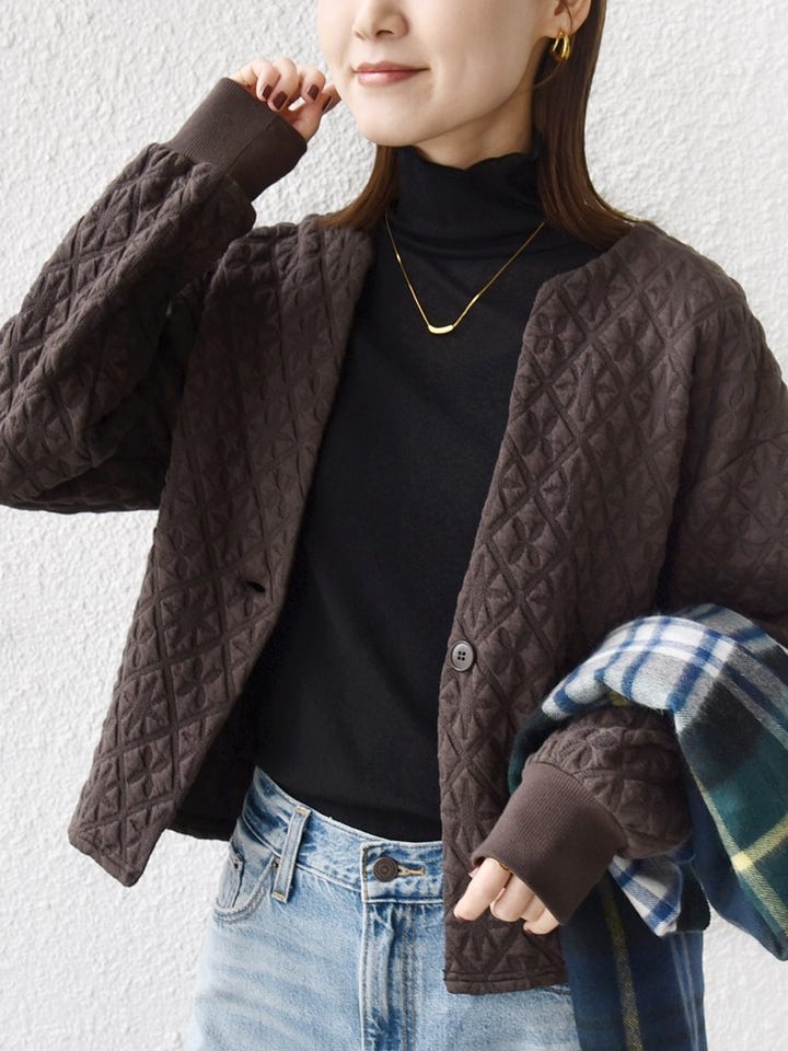 〔ONE SIZE〕《一部追加予約》【WEB限定】〈手洗い可能〉キルティング ジャカード カーディガン