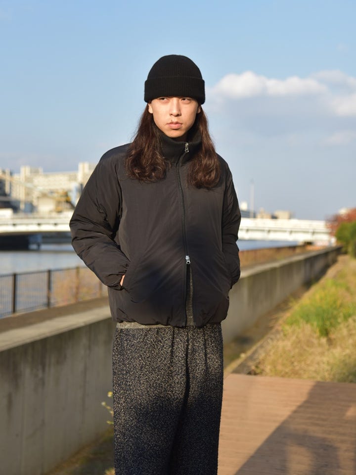 サイズ感:着丈短め、身幅若干広めのトレンド感のあるサイズ感。高機能素材のサーモライトを使用し、保温性抜群な中綿ジャケットに仕上がっております。