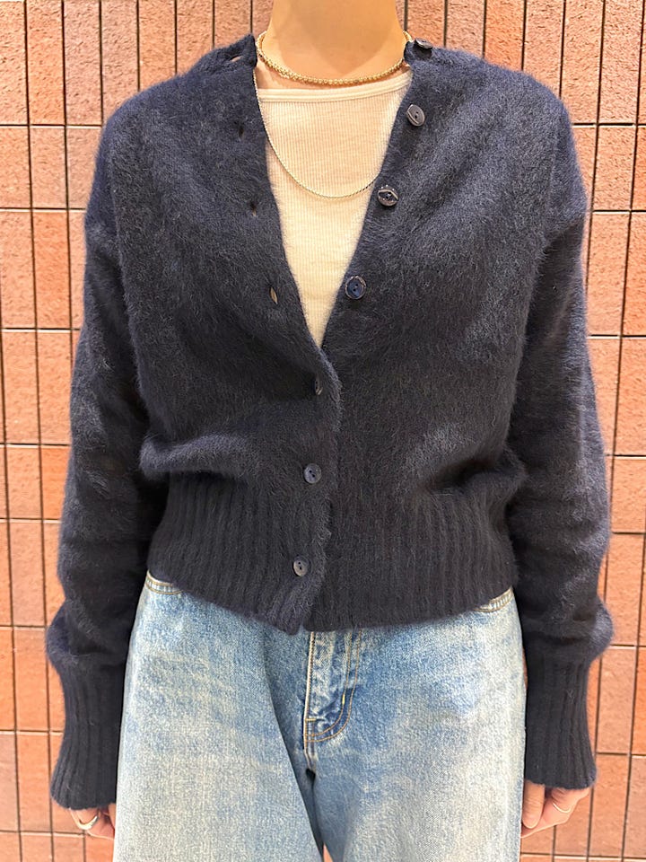 着心地:SHIPSでご用意しているニットの中では短丈デザインのカーディガンです。ボリュームのあるボトムスとの合わせはバランス良く着て頂きやすいです。小柄な方にも、身丈が長過ぎずに着用いただける長さになります。こちらのフォックスニットは、水洗いできるのでホームクリーニングもしていただけます!