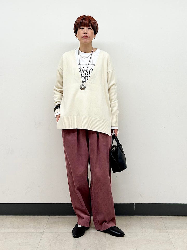 着心地:柔らかいコーデュロイなので、ごわごわすることなく軽い着心地。リラックスして着られます。