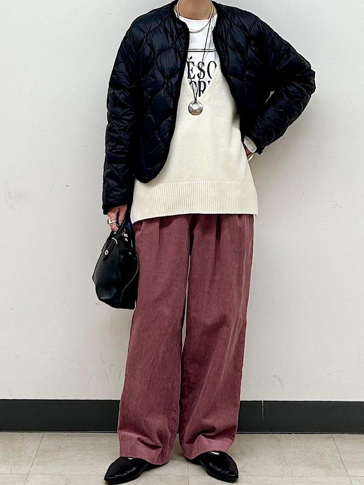 着心地:インナーダウンとしてだけではなく、メインのアウターとしても着やすいサイズ感。薄手で軽く、とても暖かかったです。