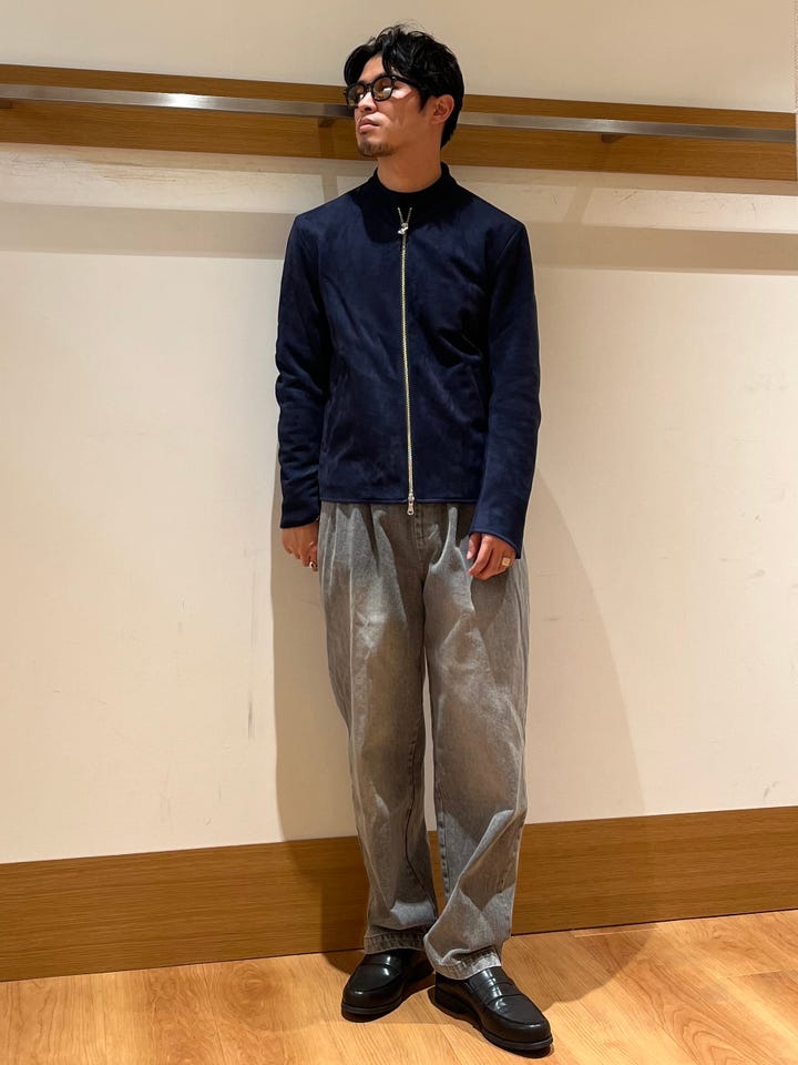 スウェードのライダースなので、キメ過ぎにならず着回しがしやすい。こちらもサイズはあまり拘らなくてよさそう