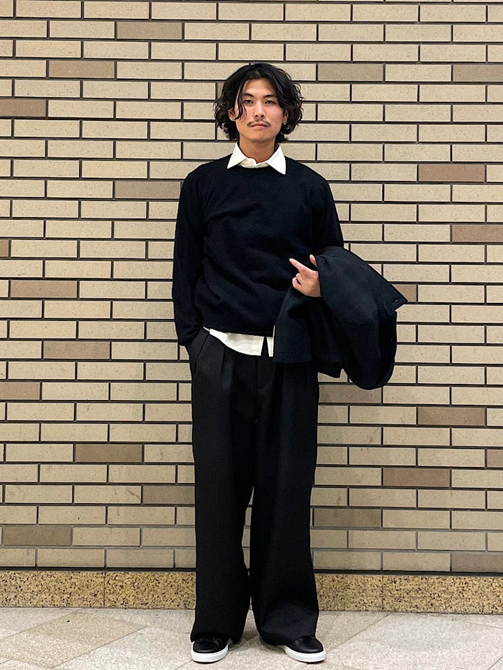 サイズ感:ゆったり目、トレンド感のある全体的に緩めなシルエットになります。