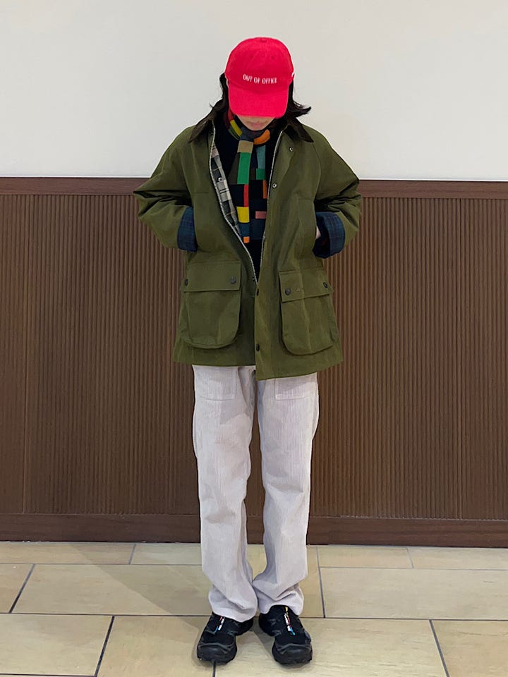 サイズ感はややゆったりしているのでジャケットやスウェットを中に来てもストレスなく着用できます!