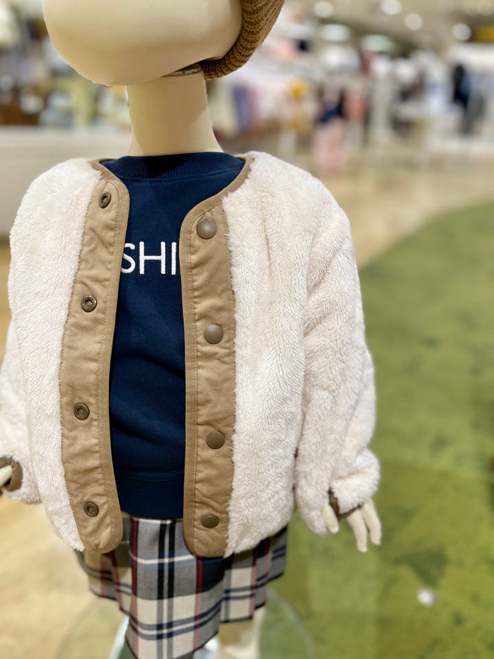 キルティングとボアのリバーシブルジャケットは柔らかなボアで着やすく、肌触りもよいのでお子様に人気です♪