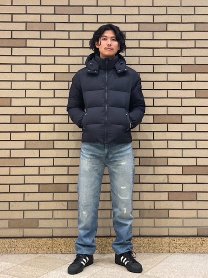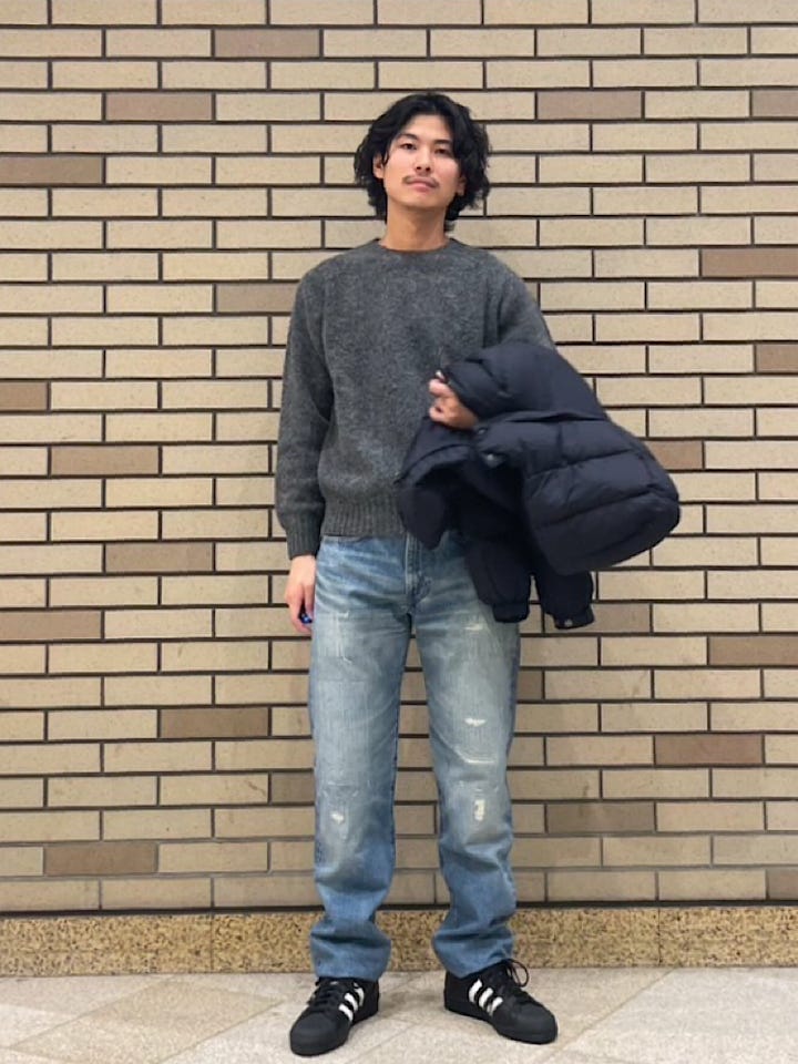 サイズ感:ジャストサイズ、中に厚手のニット着用できるサイズ感です。
