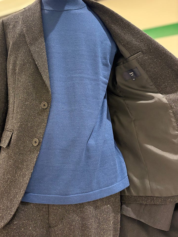 ネックがやや高めなので、ジャケット等のインナーにした時に直接首に当たらなくなるのでおすすめです。